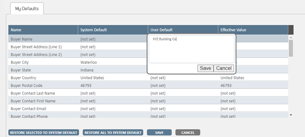 Click into the field you wish to update under the “User Default” column.